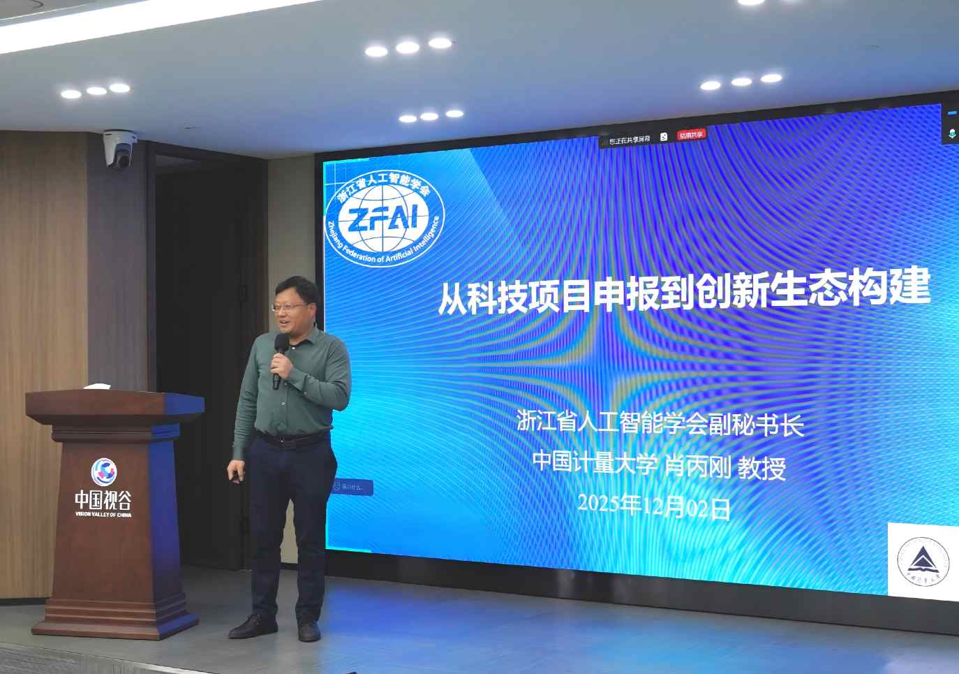 会议伊始,中国计量大学&Arm智能互联联合实验室负责人、浙江省人工智能学会副秘书长肖丙刚抛砖引玉,以《从科技项目申报到创新生态构建》为题,深度剖析了科技协同创新的现实困境与解决路径。他结合团队在智能医学影像和工业质检等领域的研发经历,指出基础研究与市场需求脱节是科技协同创新的首要难题,并建议建立“企业出题-院所答题-市场验题”的协同闭环:由龙头企业提出真实产业需求,产学研力量组建团队进行针对性攻关,并以市场应用成效作为检验标准,从而将单个项目的合作升华为可持续的创新生态,形成支撑产业高质量发展的强大合力。