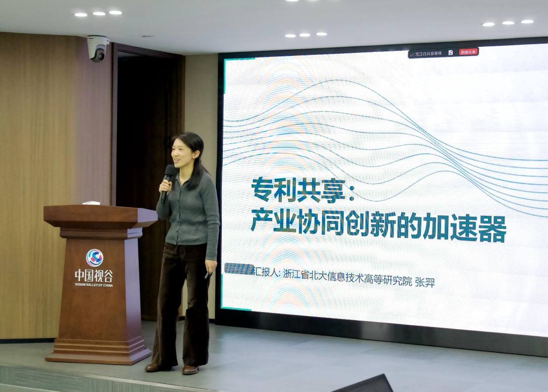 在知识产权共享的议题环节,浙江省北大信息技术高等研究院知识产权主管张羿以《专利共享:产业协同创新的加速器》为主题,结合产业发展现状和专利共享成功案例进行了言近旨远的分享。她认为,当前视觉智能产业正从单点突破走向生态竞争,若专利“各自为战”则会阻碍科技创新。联盟应共同探讨构建以专利池为核心、开源许可为补充的专利共享机制,明确入池范围、费率规则与运营模式,以专利协同破解技术转化瓶颈,提升产业整体竞争力。
