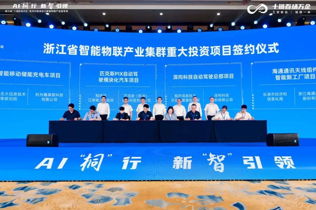 6月25日,浙江省“十链百场万企”系列对接活动之智能物联产业链专场在杭州桐庐举行,省人大常委会副主任、产业链“链长”高兴夫出席致辞。本次活动以“需求牵引 AI‘桐’行”为主题,通过省属国企、桐庐政府及中通供应链发布具体场景需求,海康威视、华为等链主企业推介解决方案,招商银行提供产融服务,推动供需精准对接。现场12个重大项目集中签约,涉及企业、高校、金融机构,总金额达67.95亿元,有力增强了产业链韧性。