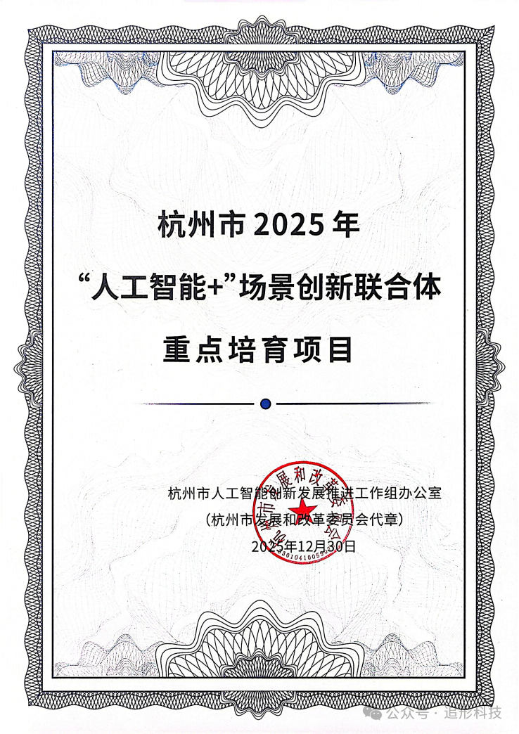 6. 追形科技“人工智能+”场景入选杭州市“人工智能+”场景联合创新大赛重点培育项目