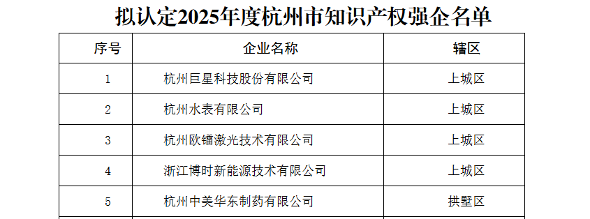 2025年度杭州市知识产权强企名单(部分)